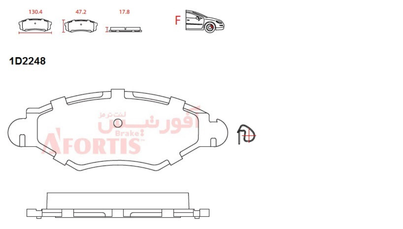 لنت ترمز جلو پژو 206 تیپ 2و3 آفورتیس کد 1D2248L